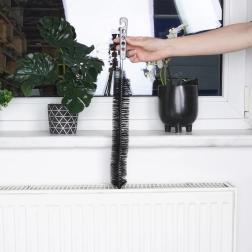 Praktische en elastische radiatorenborstel van 70 cm voor eenvoudig reinigen van smalle en moeilijk bereikbare plekken. Dichte, duurzame borstelharen verwijderen effectief stof en vuil tussen lamellen, achter meubels en in smalle kieren. De comfortabele handgreep zorgt voor een zekere grip en ophangmogelijkheid voor handig opbergen.