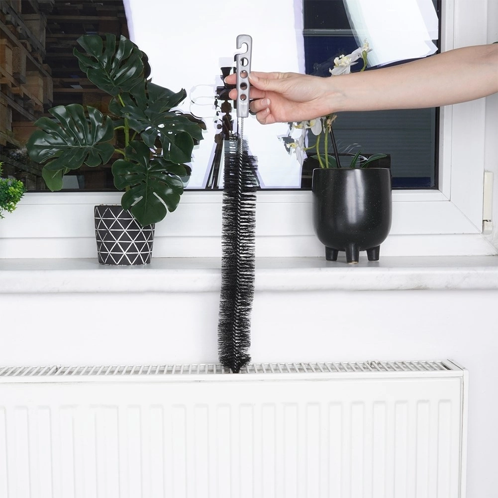 De borstel is ideaal voor het reinigen van radiatoren, maar ook achter meubels, in spleten en andere lastig toegankelijke plekken. De dichte borstelharen vangen stof, spinrag en fijn vuil effectief op zonder het oppervlak te krassen.