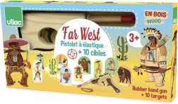 Beleef de sfeer van het Wilde Westen met dit houten pistool met doelen van VILAC. Het spel is ideaal voor kinderen vanaf 3 jaar en helpt nauwkeurigheid te trainen, concentratie en fijne motoriek. Gewoon het elastiek spannen, de doelen neerzetten en beginnen met schieten – plezier voor het hele gezin.