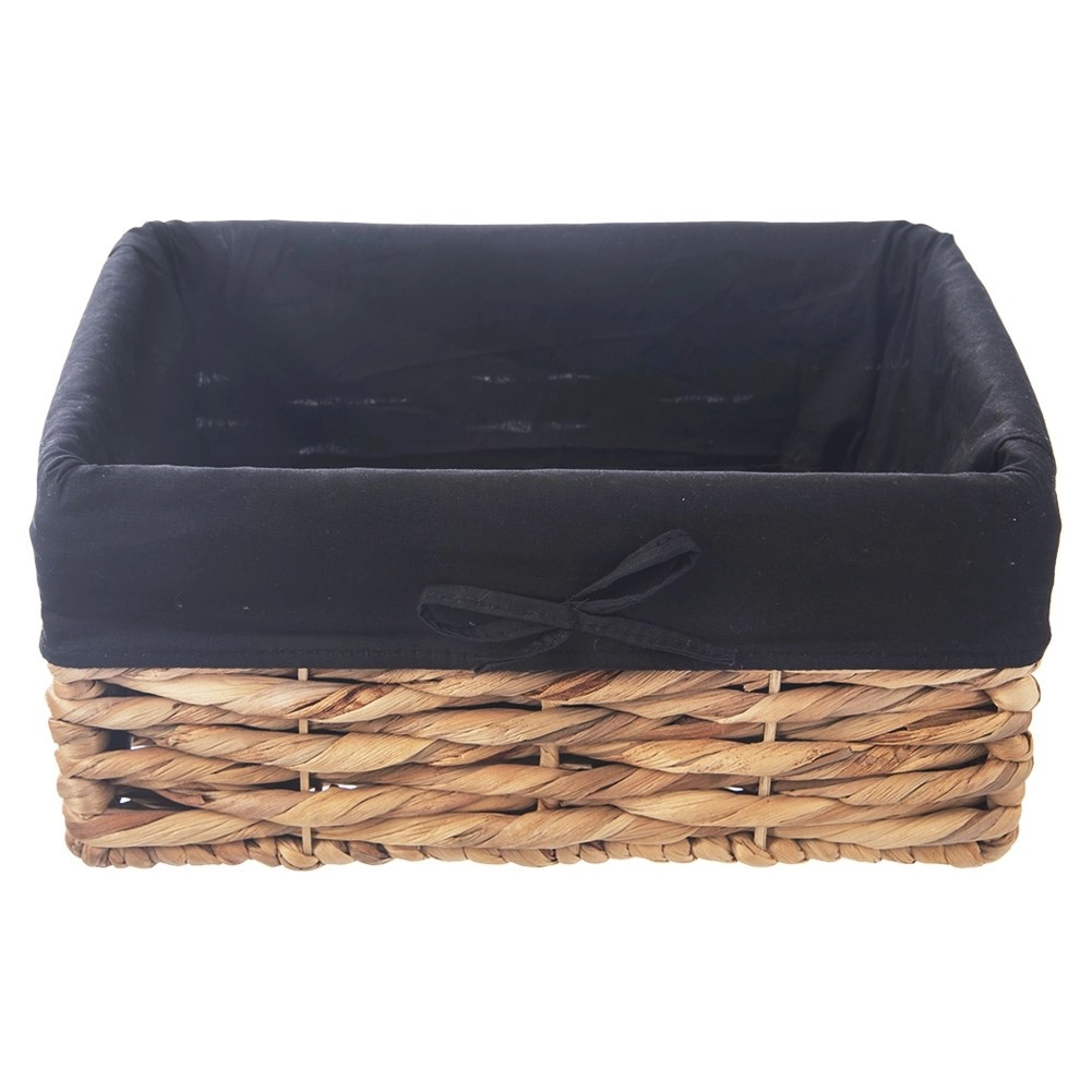 Stijlvolle mand van natuurlijke vlecht met metalen frame en een uitneembare zwarte stoffen inzet is ideaal voor het organiseren van het huishouden en het serveren van brood en banket. Handgemaakt voor stevigheid en een lange levensduur; de inzet kan gewassen worden op 30 °C.
