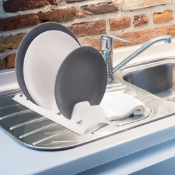 Praktische keukenorganizer voor overzichtelijk drogen en opbergen van tot 8 borden of deksels. Dankzij de stevige scheidingsribben blijft het serviesgoed stabiel rechtop staan, bespaar je ruimte in de kast, lade en op het aanrecht en help je krassen te voorkomen. Licht maar duurzaam kunststof in wit is gemakkelijk schoon te maken en geschikt voor de vaatwasser.