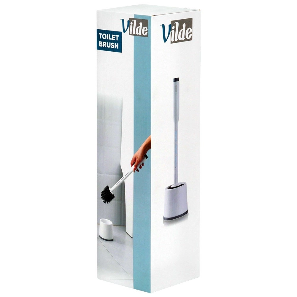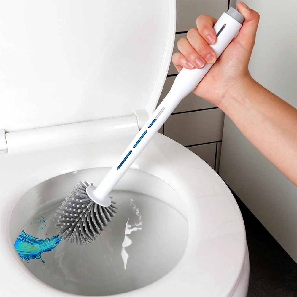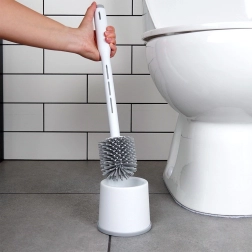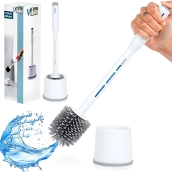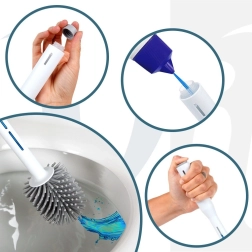 Praktische siliconen wc-borstel met houder en geïntegreerde reinigingsmiddeldispenser in het handvat voor snelle en hygiënische schoonmaak. Dankzij de flexibele siliconen haren, anti‑slip basis en compacte houder zorgt hij voor grondige reiniging zonder krassen en een schone opslag in elke badkamer.
