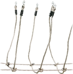 Metalen doorvoeren aan de uiteinden van het touw maken eenvoudige en flexibele bevestiging tussen twee vaste punten mogelijk.