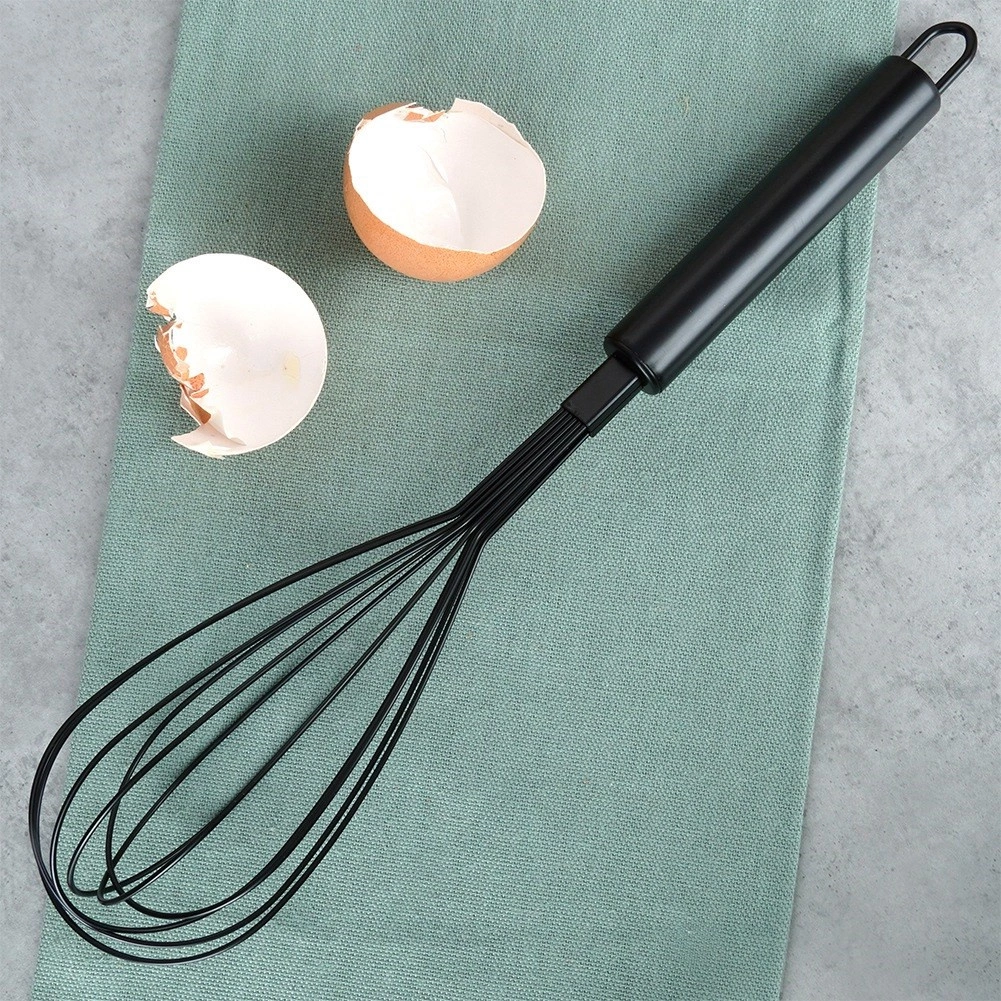 Elegante en duurzame garde van roestvrij staal in het zwart, die lichtheid en stevigheid combineert voor dagelijks koken en bakken. Dankzij de breedte van ca. 6 cm en de ballonkop worden ingrediënten snel en gelijkmatig belucht, zodat je luchtig schuim en gladde sauzen krijgt.
