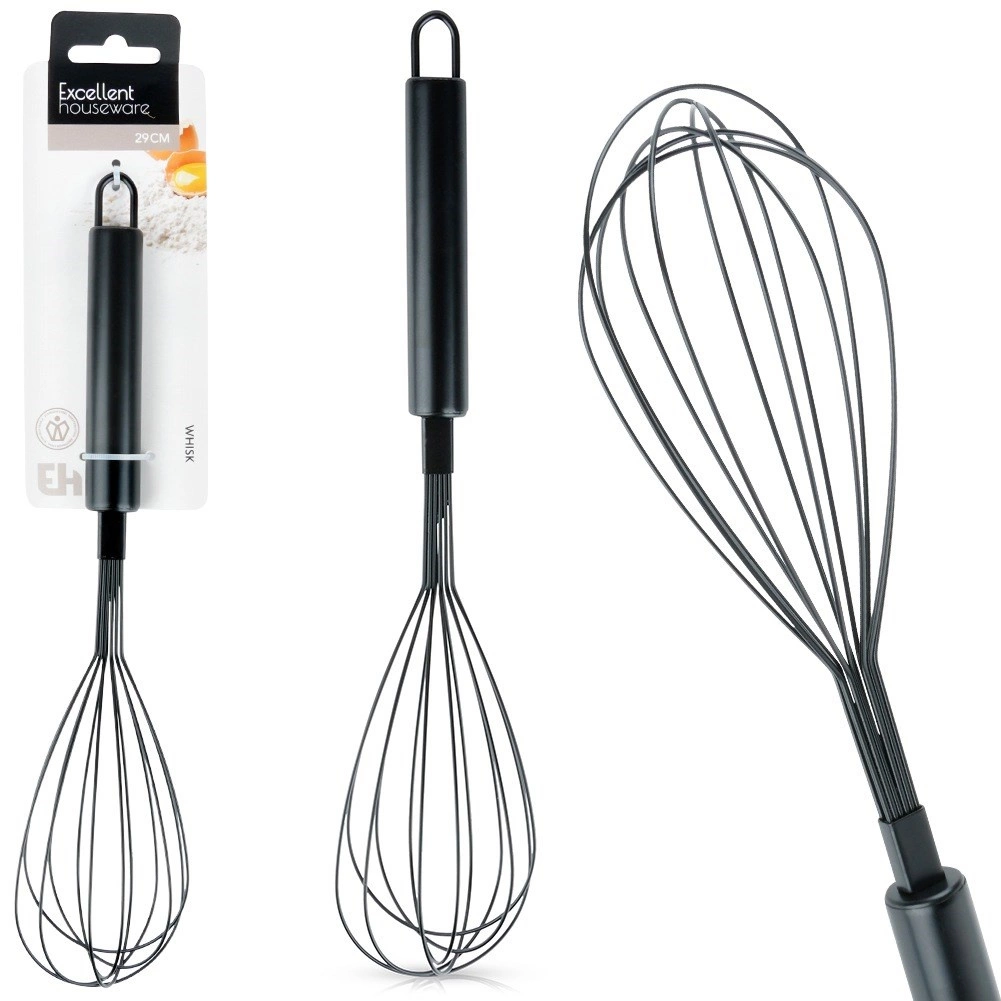 Praktische keukenklopper van 29 cm voor eenvoudig kloppen en roeren. Ideaal voor eiwitten, slagroom, crèmes en sauzen. Lichtgewicht constructie van roestvrij staal met een ergonomische handgreep en ophangoog. Makkelijk te onderhouden, vaatwasserbestendig.