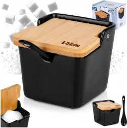 Deze stijlvolle suikerschaal met minimalistisch design is een prachtige aanvulling op elke keuken en eetkamer. Het matte zwarte keramiek in combinatie met natuurlijk bamboe oogt elegant en is tegelijk zeer praktisch voor dagelijks gebruik. Dankzij het kantelbare deksel en de uitsparing voor het lepeltje heb je suiker of zout altijd bij de hand en tegelijk beschermd.