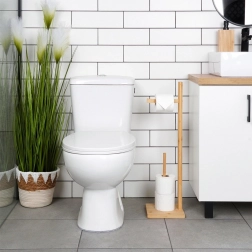 Eenvoudige plaatsing zonder boren – de vrijstaande constructie met stabiele voet maakt het mogelijk de houder overal neer te zetten en eenvoudig te verplaatsen. Het natuurlijke materiaal past in moderne en klassieke badkamers en zorgt voor een strakke, minimalistische look.