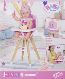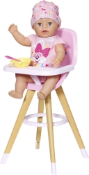 Deze moderne BABY born poppenstoel combineert een Scandinavische look met functionele details voor dagelijks speelplezier. Stabiele, naar buiten geplaatste poten met houtlook en een ronde voetensteun zorgen voor zekerheid tijdens het serveren van lekkernijen. De roze zitting met hoge rugleuning en een schattige print biedt de pop comfortabel zitgemak.