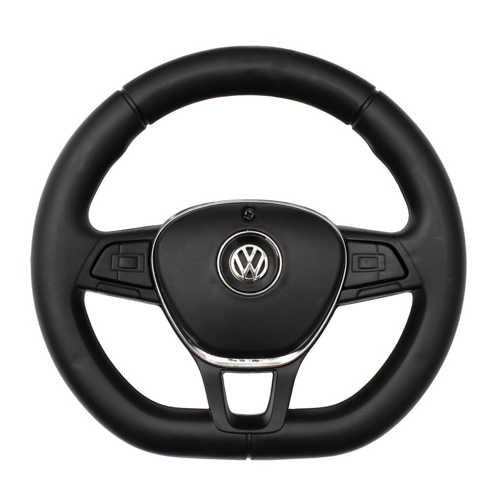 Voor jongere kinderen maakt de duwstang gemakkelijke besturing door de ouder mogelijk; oudere kinderen waarderen de optie om zelfstandig te rijden door zich af te zetten. Het drievoudige stuur met VW-logo heeft een claxon en vrolijke melodieën (voeding 2× AA, niet inbegrepen). De praktische opbergbox onder de zitting biedt ruimte voor kleine spulletjes, terwijl de inklápbare voetsteunen en afneembare armleuningen extra comfort geven.