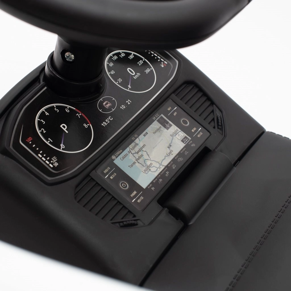 Brede zitting met rugleuning, opbergruimte, bekerhouder en stuur met claxon en melodieën bieden comfort én speelse interactie.