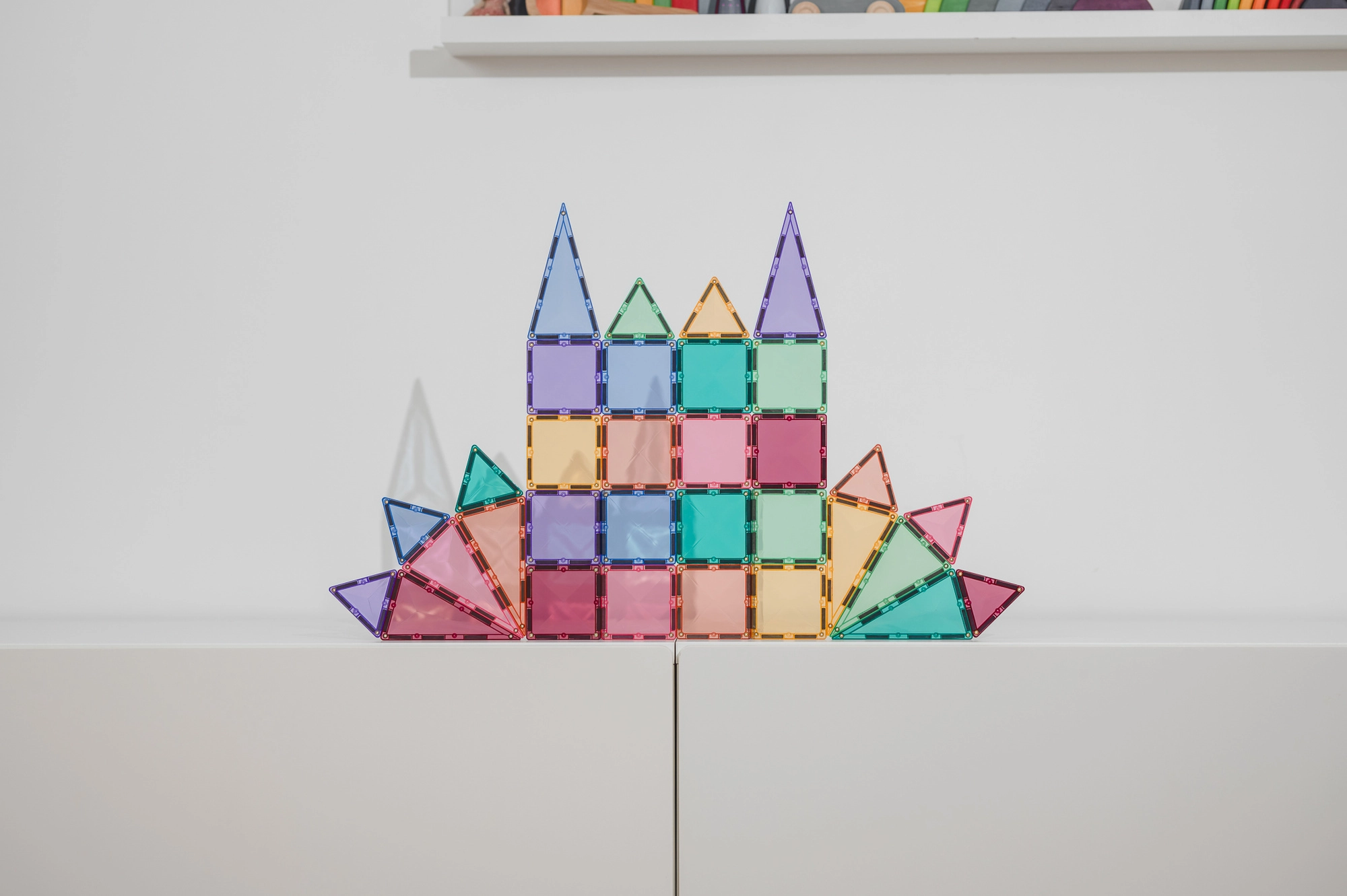 Transparante tegels in zachte tinten spelen prachtig met licht. Ze stimuleren zintuiglijke waarneming en creatief experimenteren.