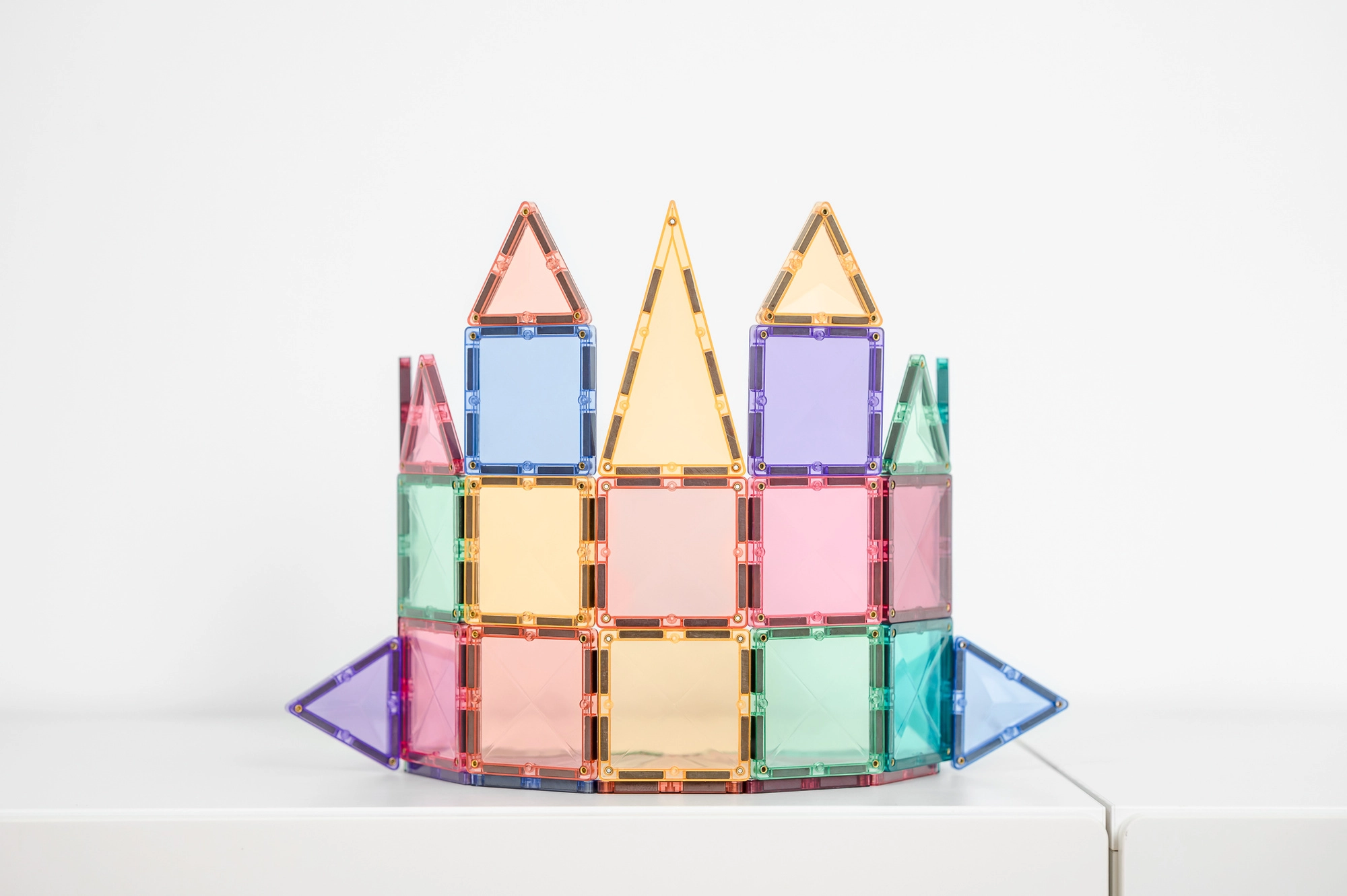 De Pastel Mini Pack van CONNETIX biedt de ideale start in magnetisch bouwen. Kinderen verbinden de transparante tegels moeiteloos en creëren kastelen, bruggen en raketten, terwijl ze spelenderwijs leren over geometrie, magnetisme en balans. Hoogwaardig ABS-plastic zonder BPA en ftalaten en stevige, geklonken verbindingen zorgen voor een lange levensduur, zelfs bij intensief gebruik.