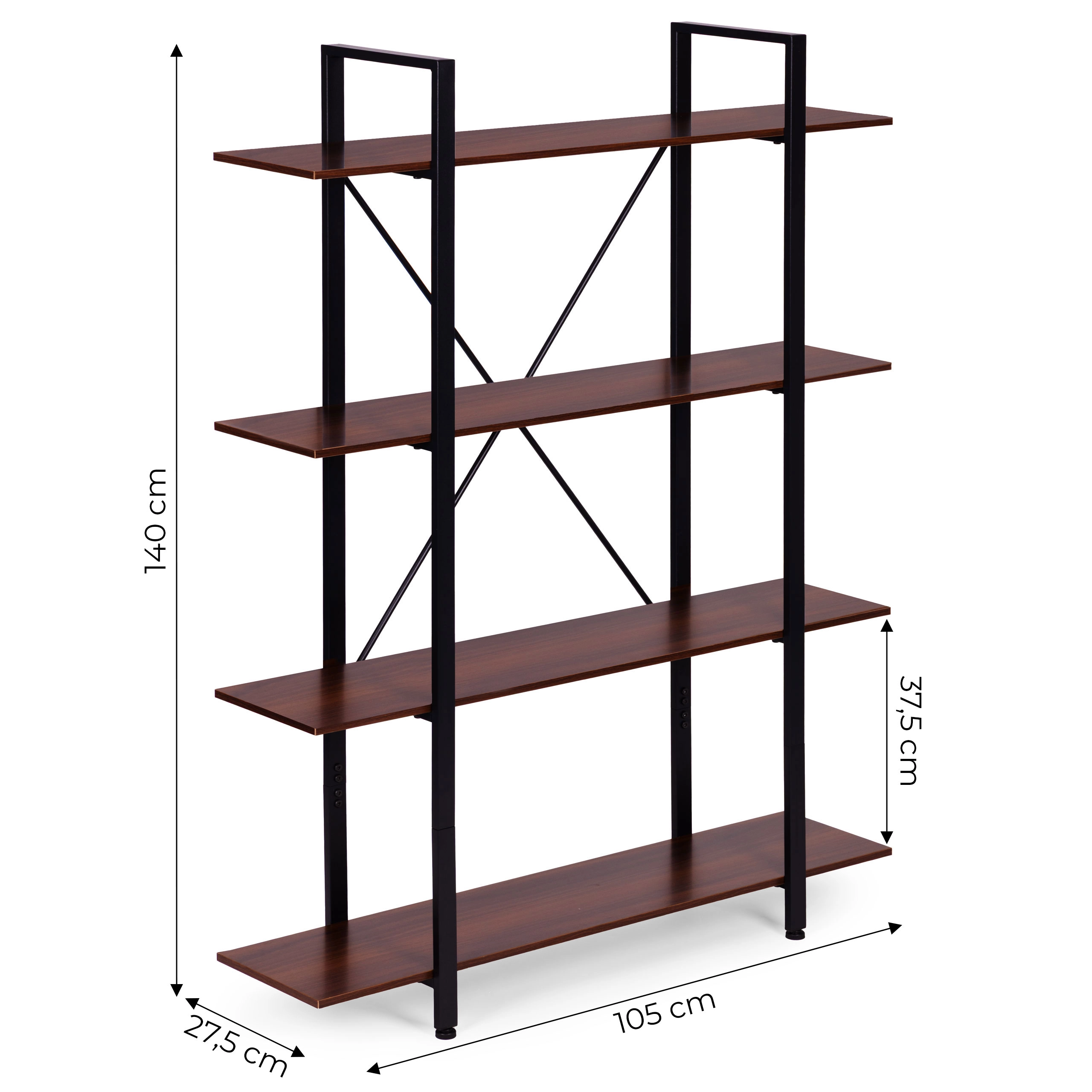Het stabiele metalen frame met kruisversteviging aan de achterzijde en planken van MDF zorgen voor een lange levensduur, ook bij dagelijks gebruik. Verstelbare voetjes beschermen de vloer en helpen het rek perfect uit te lijnen. Elke plank draagt tot 10 kg, zodat alles veilig op zijn plek blijft.