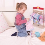 Geef de poppen een nieuwe flair met elegante bloemenjurk en een heerlijk zacht turquoise vestje. De set is ontworpen voor poppen van 28 cm en bevat ook een houten kleerhanger, waardoor het wisselen en ordenen van kleertjes nog leuker en overzichtelijker wordt. Een ideale aanvulling voor de kinderkamer en bij andere outfits.