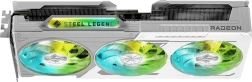 Hoogwaardige grafische kaart ASROCK Radeon RX 9060 XT Steel Legend met 16 GB GDDR6-geheugen en triple-fan koeling met RGB voor vloeiend gamen in hoge resolutie, uitstekende efficiëntie en een stijlvolle witte look met metalen backplate.