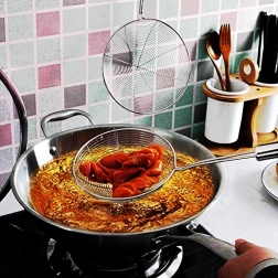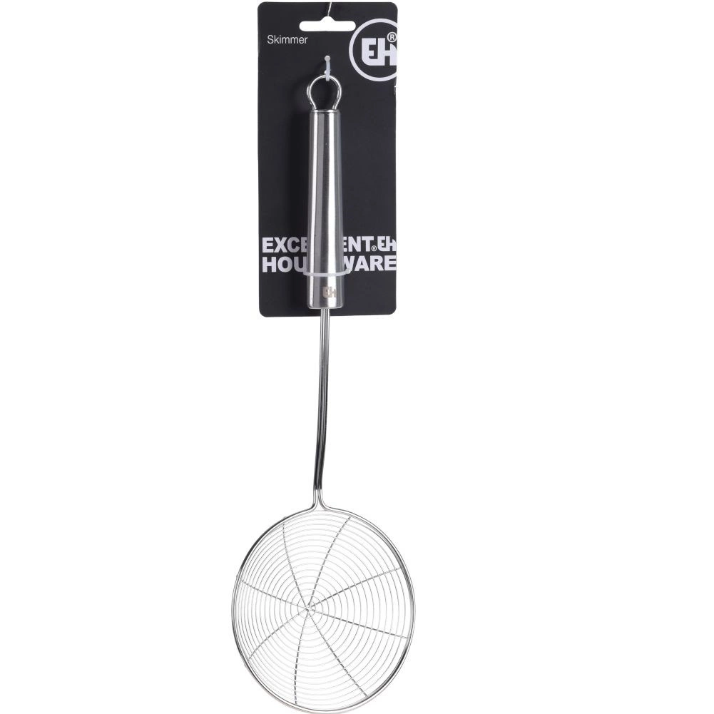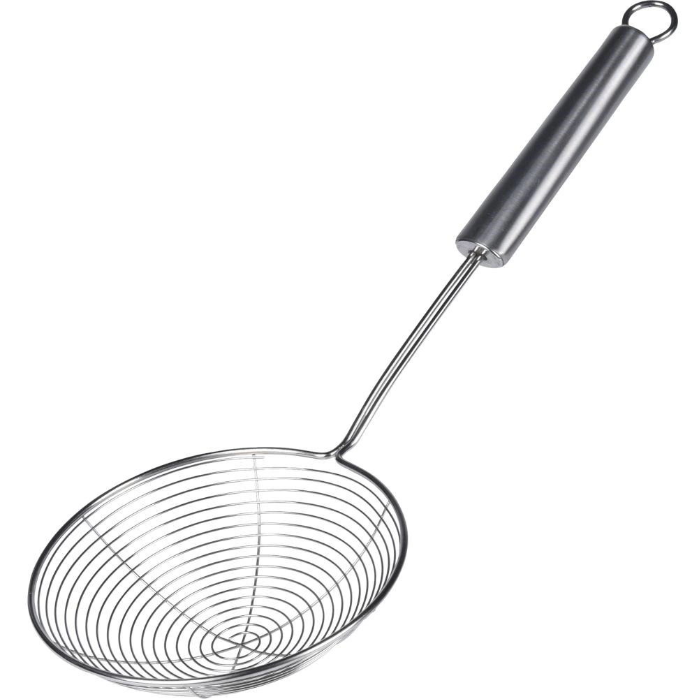 De brede draadkop zorgt voor razendsnel afgieten van water of olie en maakt het eenvoudig om knoedels, pasta of friet op te scheppen.