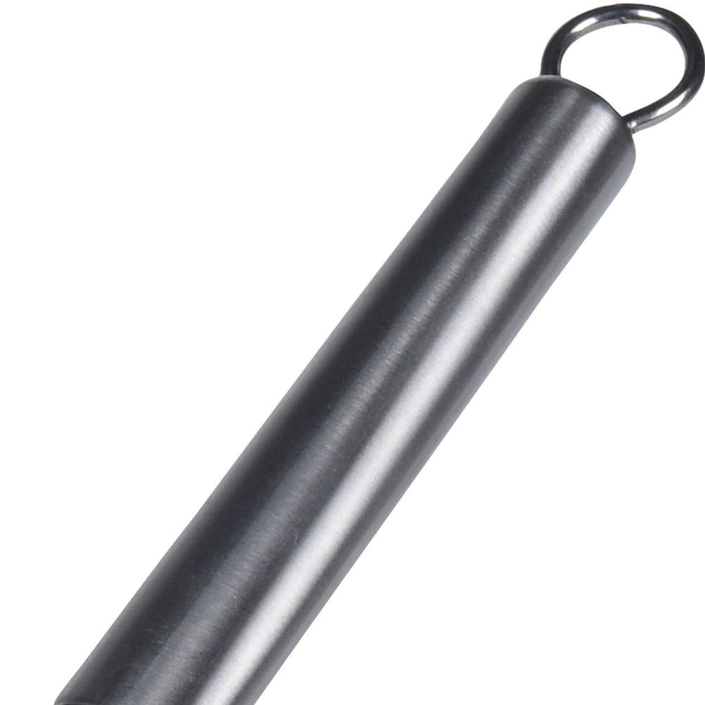 De lange greep biedt een veilig bereik boven hete stoom en olie, het oogje aan het uiteinde maakt ophangen aan een reling en ruimtebesparende opslag mogelijk. De volledig roestvrijstalen uitvoering is corrosiebestendig, hygiënisch en geschikt voor de vaatwasser.