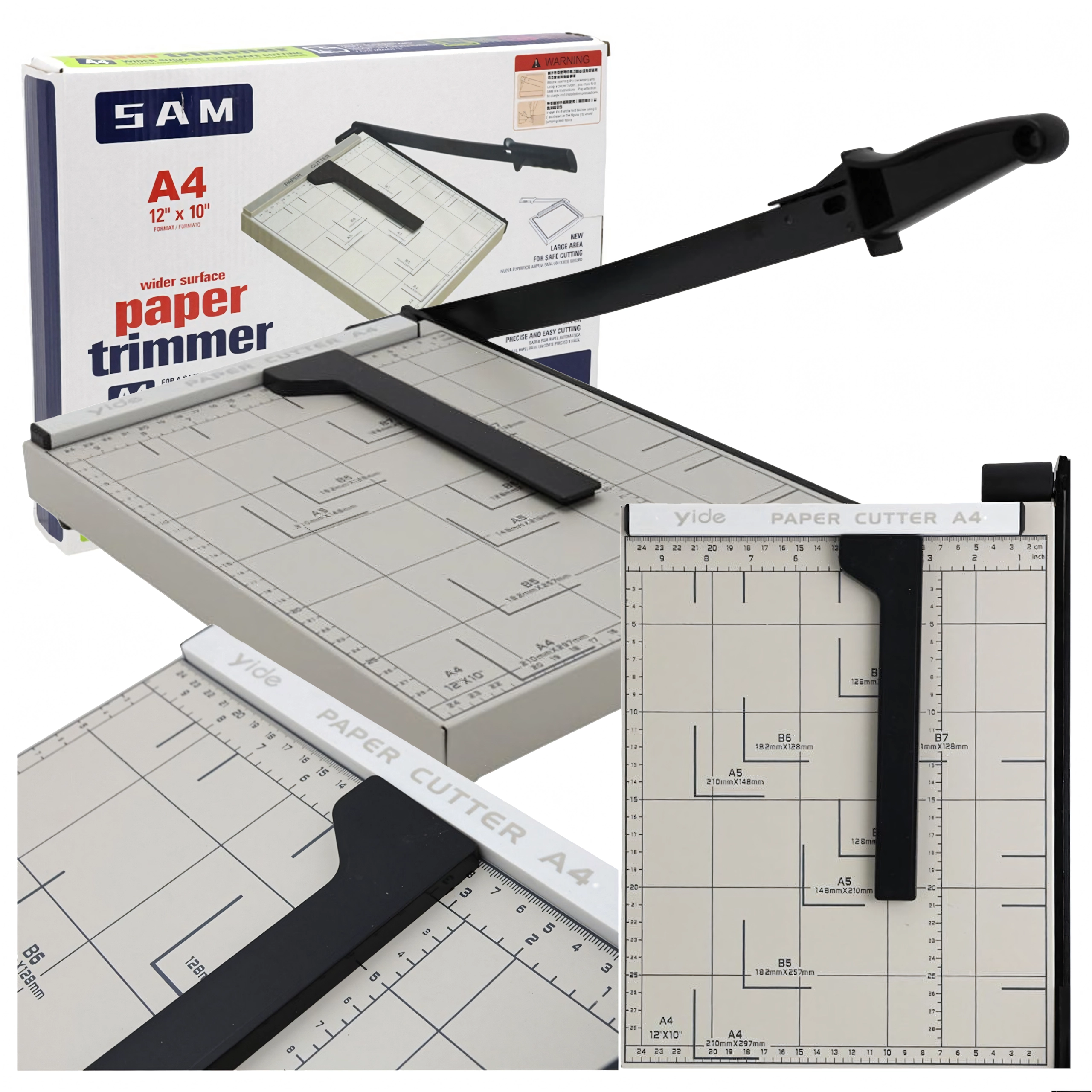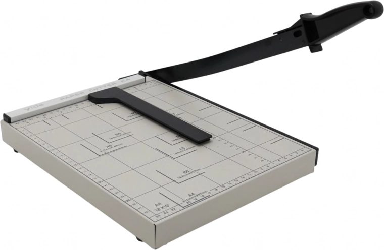 Deze robuuste papiersnijder maakt veilige en rechte sneden mogelijk dankzij het precisie-meetraster en de formaatmarkeringen (A4, A5, B5, enz.). De stevige metalen constructie en de hefboom met comfortabele handgreep zorgen voor een soepele werking en consistente resultaten bij het snijden van documenten, foto’s of presentatiemateriaal.