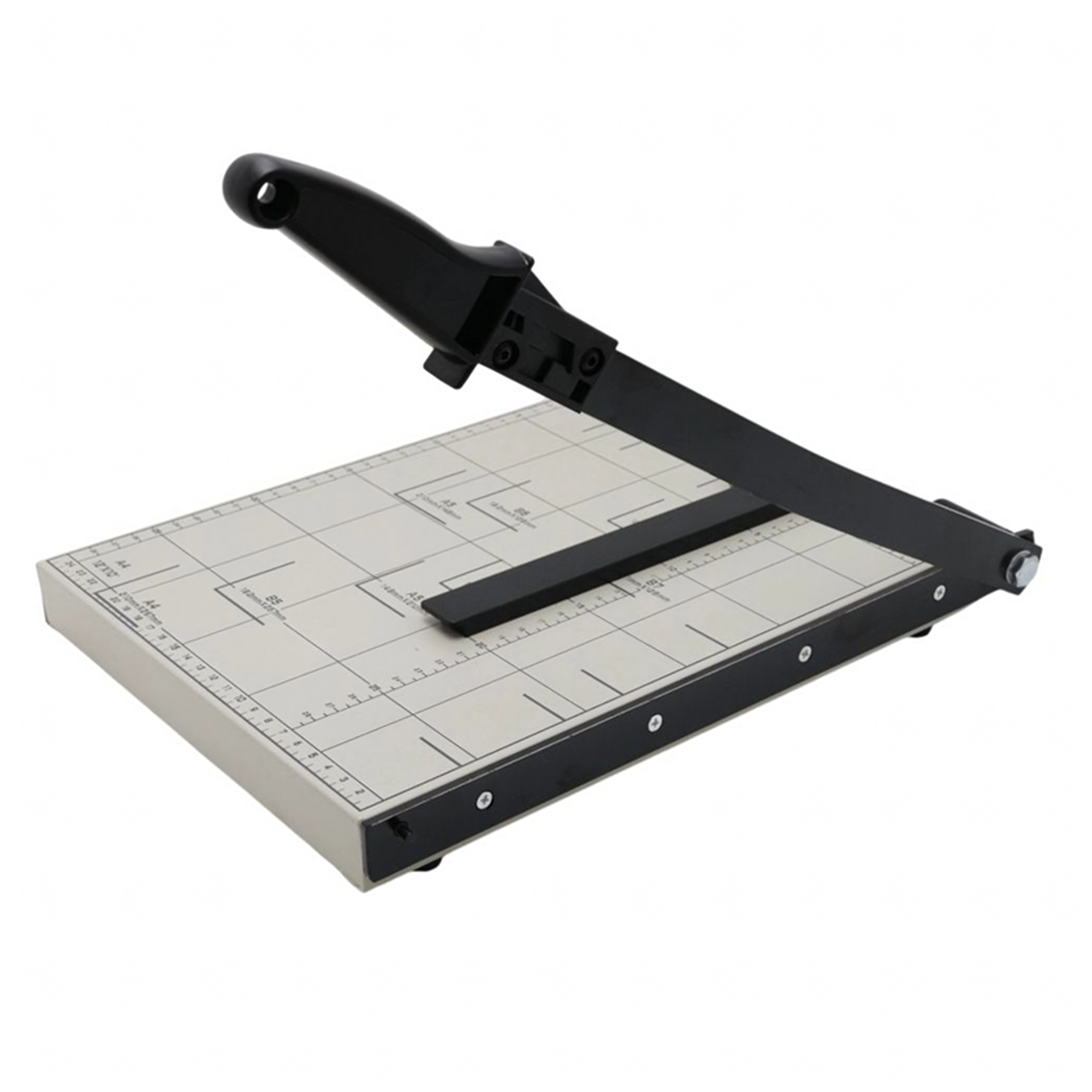 Antislipvoeten en een dwarssteun houden het papier stevig op zijn plaats, terwijl het roestvrijstalen mes een lange levensduur en een schone snede zonder rafels biedt. Een uitstekende oplossing wanneer u efficiënt meerdere vellen tegelijk wilt snijden met nadruk op precisie.