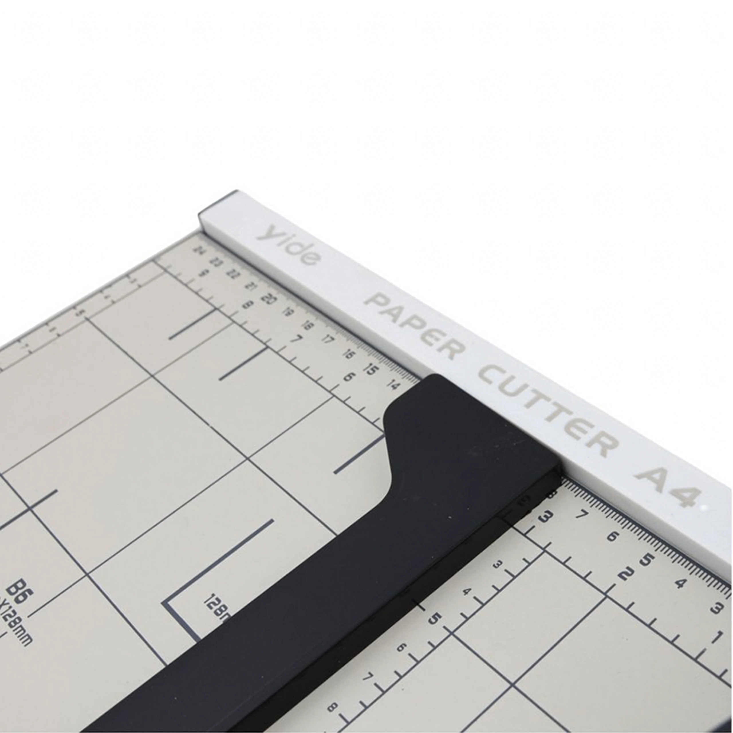 Geïntegreerde liniaal en markeringen voor A4, A5, B5 enz. versnellen het uitlijnen van papier en helpen perfect rechte sneden te bereiken.