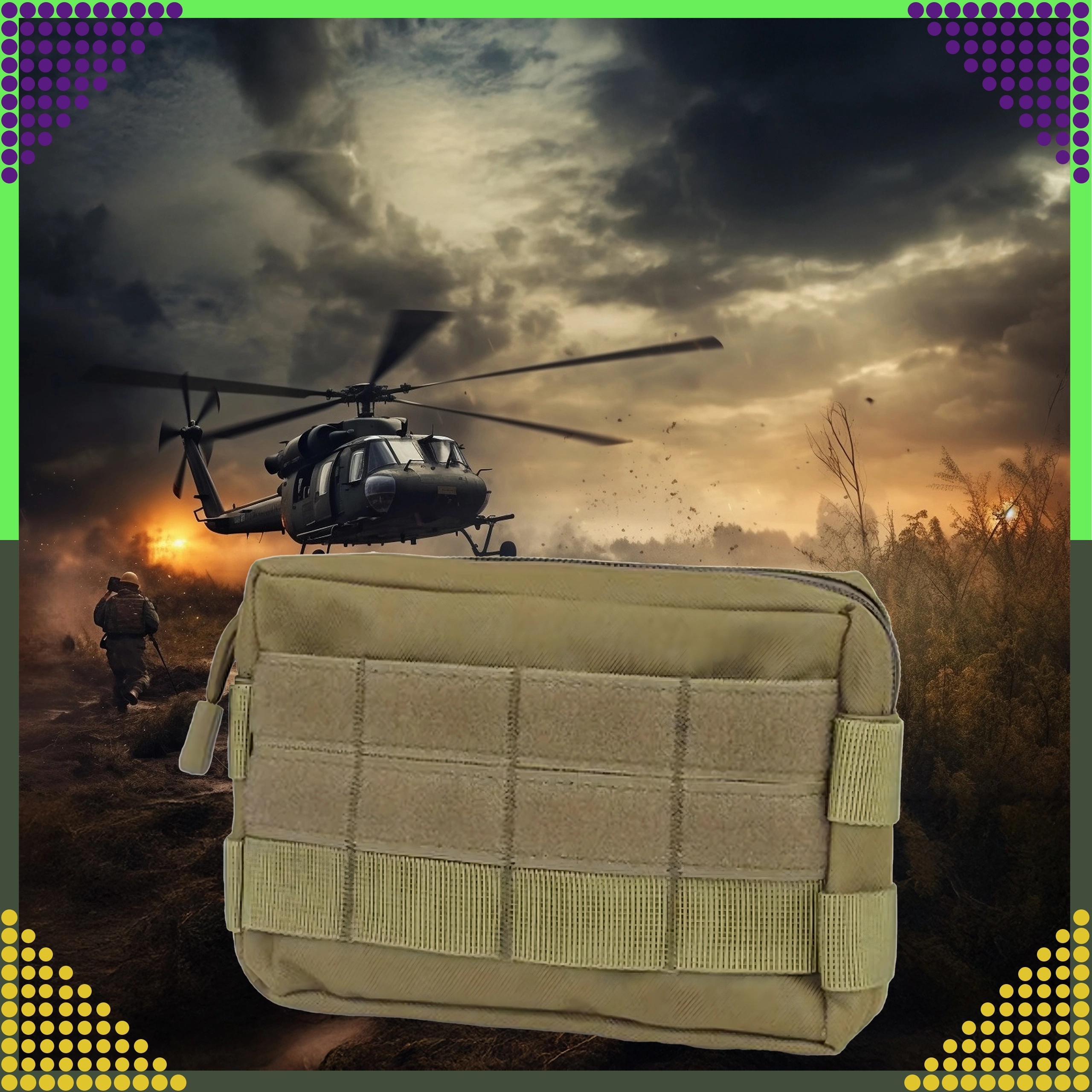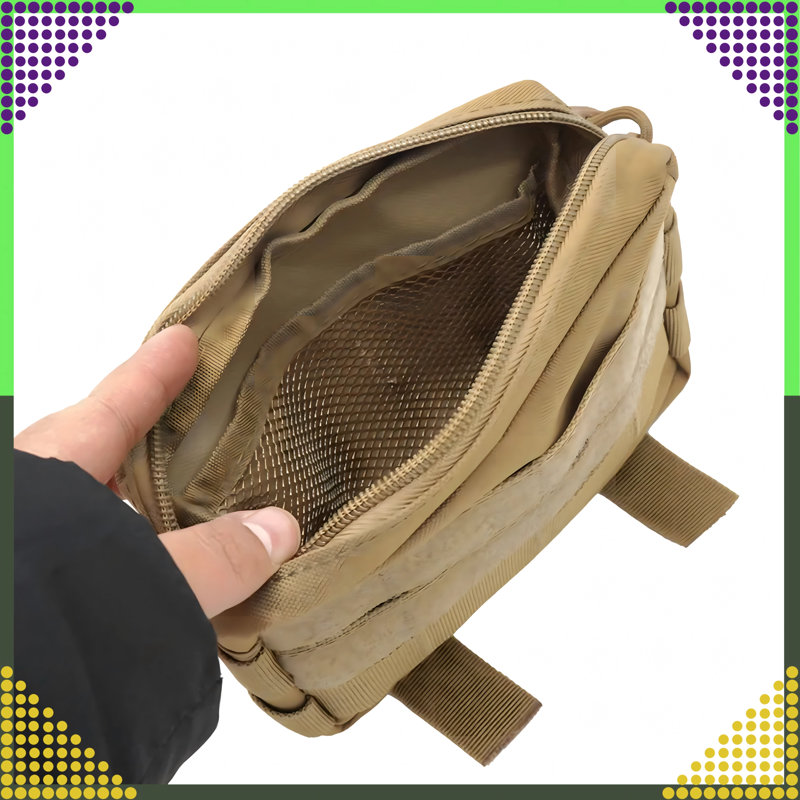 Compacte tactische pouch van duurzaam 600D nylon met waterafstotende afwerking, MOLLE-compatibiliteit en organizer van elastisch mesh. Het hoofdvak sluit met een rits met paracord-trekkers voor snel en zeker openen. Ideaal als EDC-etui, mini EHBO-kit of gereedschapsetui voor op vest, rugzak of riem.
