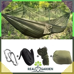 De hangmat met muskietennet is een ideale keuze voor kamperen, uitstapjes en relaxen in de tuin. De lichte en ademende nylon zorgt voor comfort, ook bij langdurig gebruik, en dankzij de snelle installatie hang je hem eenvoudig tussen bomen of palen met behulp van koorden en karabiners.