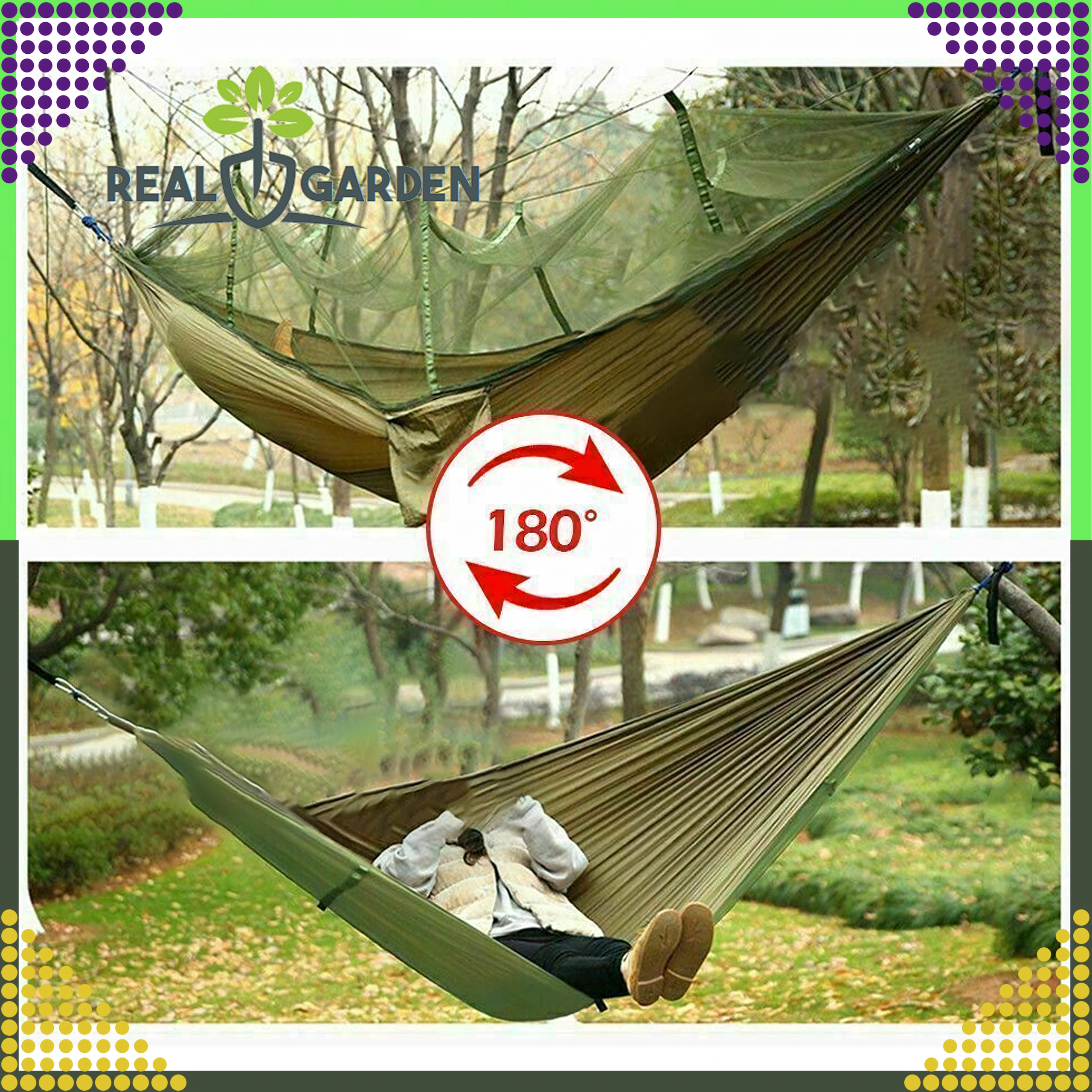 Het geïntegreerde muskietennet beschermt je betrouwbaar tegen insecten, zodat je ook in de natuur van een rustige slaap kunt genieten. Dankzij de afmetingen van 260 × 140 cm biedt hij voldoende ruimte en het draagvermogen van 180 kg garandeert veilig gebruik.