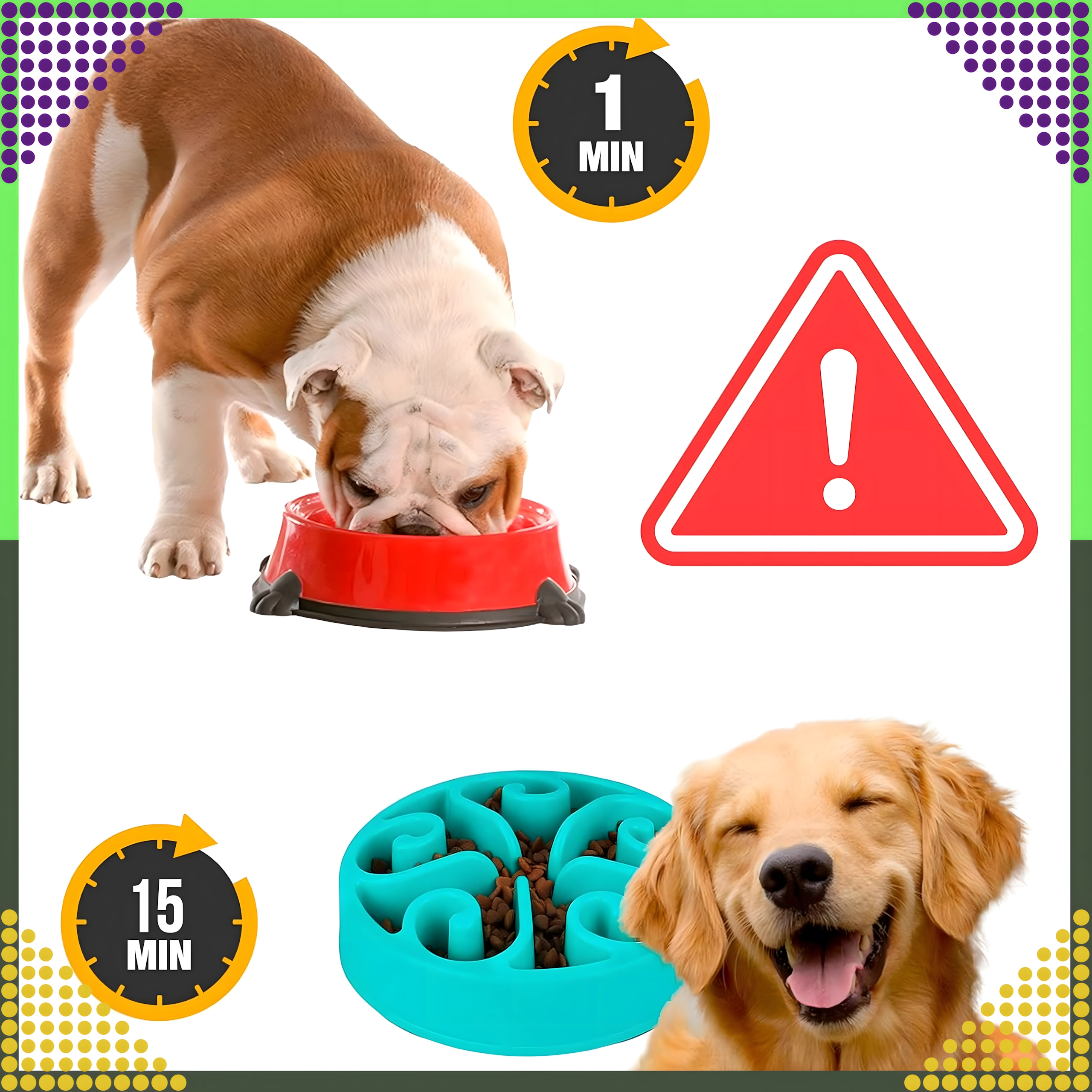 Verhoogde kanaaltjes en schotjes creëren een doolhof dat het dier dwingt langzamer te eten. Dit vermindert schrokken, ondersteunt een betere spijsvertering en verlaagt het risico op obesitas.