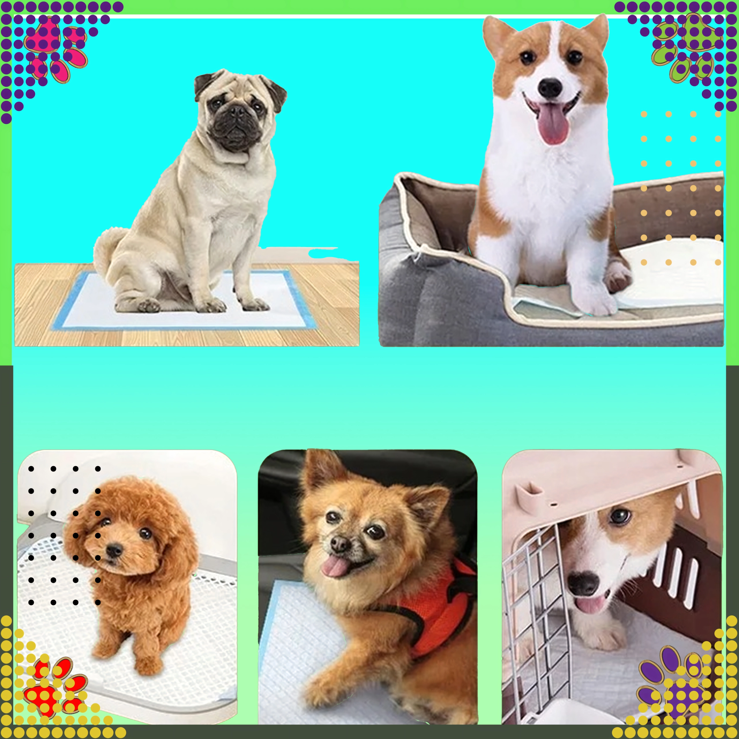 Puppytraining, zorg voor oudere of zieke dieren, bescherming van vloeren en manden, voor transportbox en kennel
