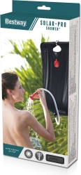 De Bestway zonnedouche is ideaal voor kamperen, strand, weekendhuisje of tochten zonder faciliteiten. Zwart PVC absorbeert zonnestralen en verwarmt het water tot een comfortabele temperatuur, zodat u kunt douchen of vaat afspoelen, zelfs op afgelegen plekken. De geïntegreerde thermometer laat u de gereedheid van de temperatuur eenvoudig controleren.