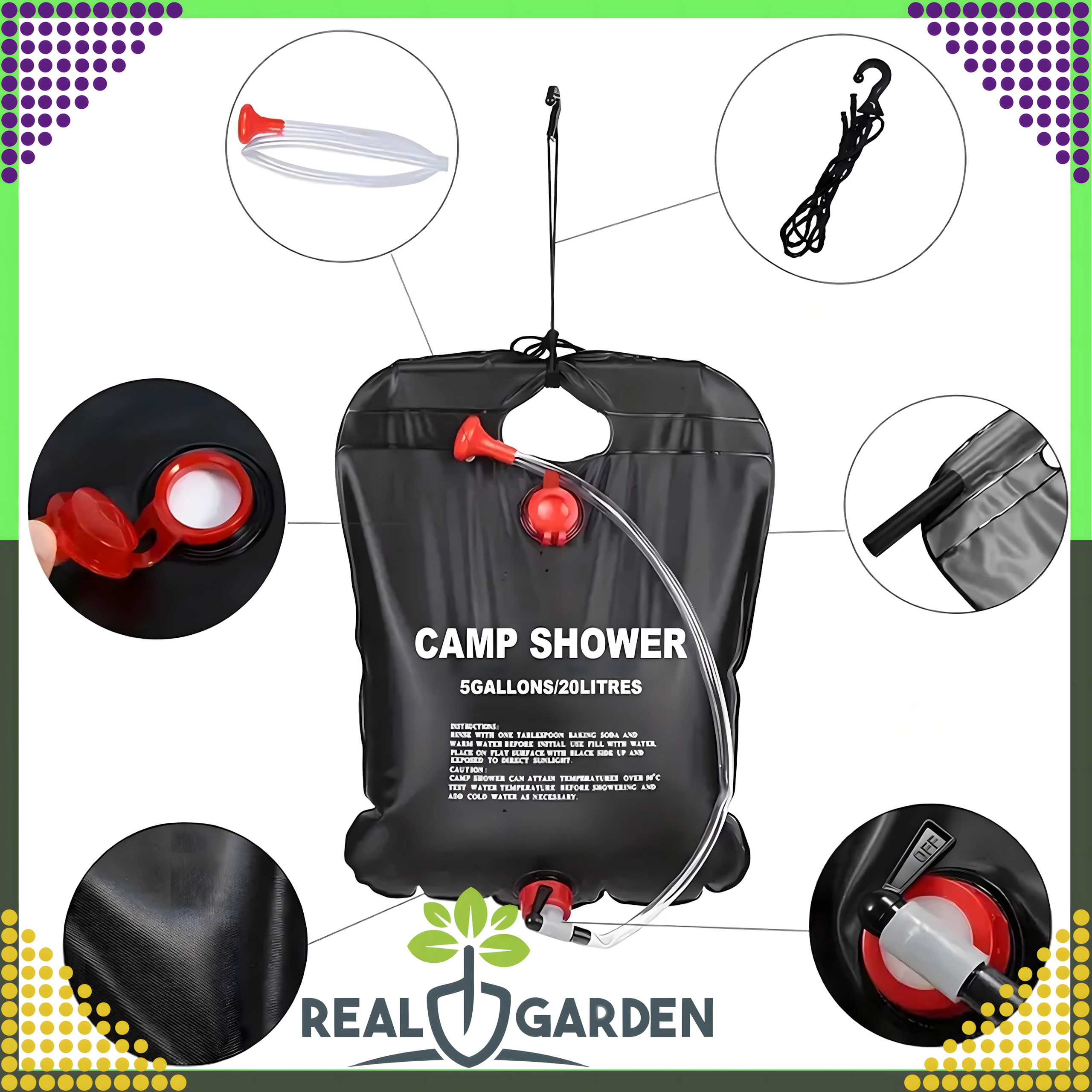- Grote inhoud 20 l – genoeg water voor meerdere douches