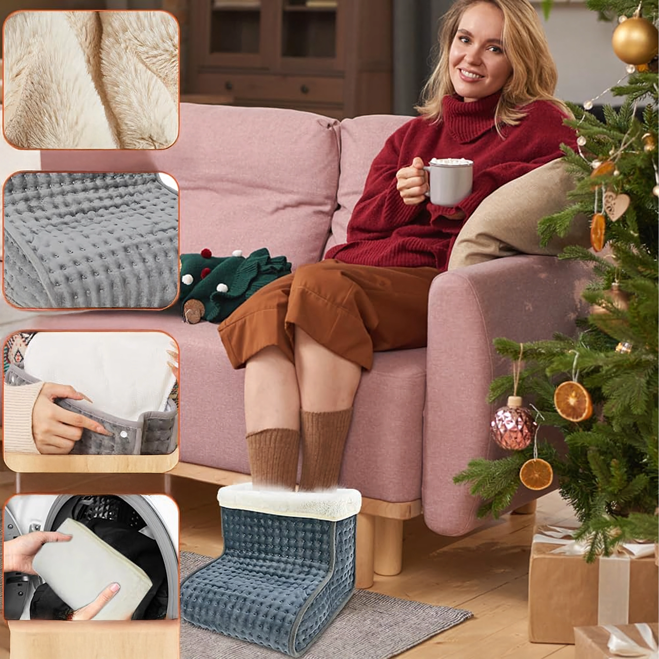 De elektrische voetverwarmer is ontworpen voor maximaal comfort tijdens ontspannen voor de tv, aan je bureau of op de bank. De zachte pluchen binnenkant met aangename voering verspreidt de warmte gelijkmatig en helpt koude voeten snel op te warmen. De intuïtieve controller met display maakt nauwkeurige instelling van temperatuur en verwarmingsduur mogelijk voor veilig en zorgeloos gebruik.