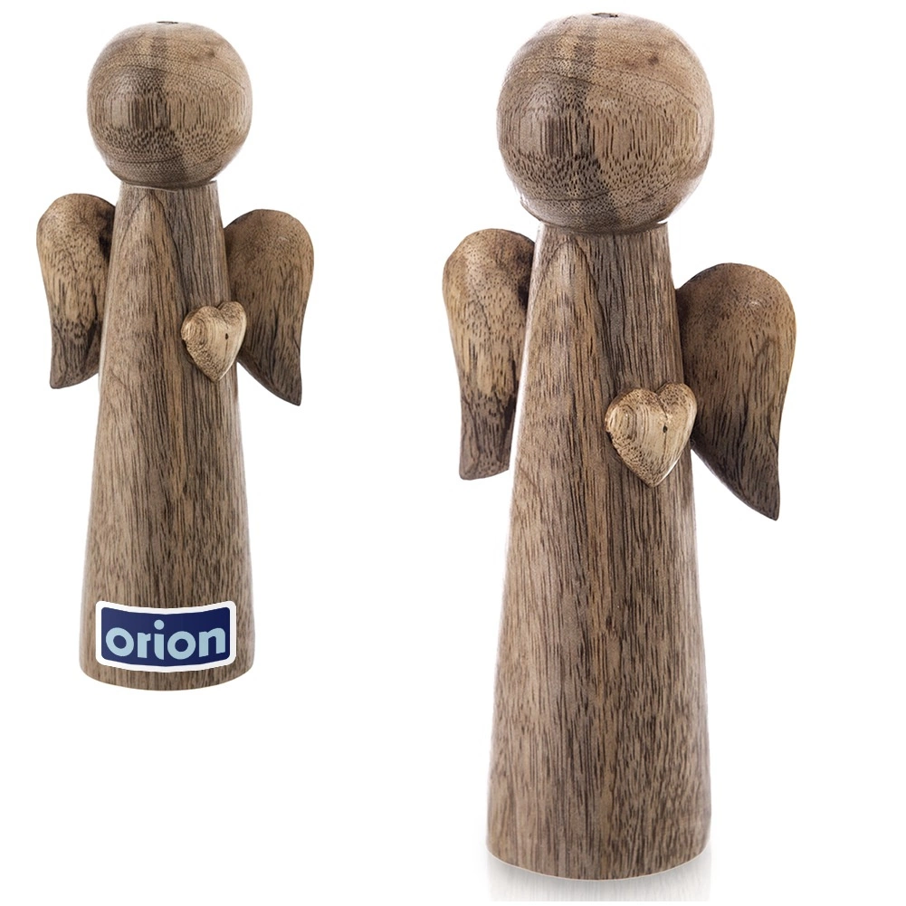 Elegante houten engel van mangohout in een natuurlijke kleur is een stijlvolle decoratie voor het hele jaar. Dankzij het minimalistische design, de natuurlijke houtnerf en het handmatige vakmanschap komt hij prachtig tot zijn recht op een plank, dressoir of feesttafel. Hoogte 21 cm, stabiele vrijstaande uitvoering en een origineel product van het merk ORION garanderen kwaliteit en een tijdloze uitstraling.