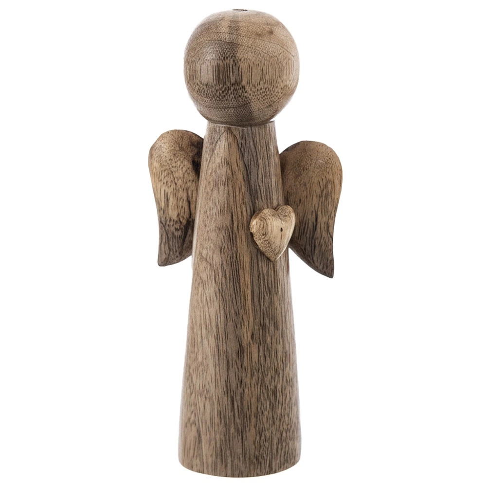 Breng rust en warmte in je interieur. De houten engelfiguur van mangohout betovert met zijn minimalistische vorm, subtiel gesneden vleugels en een bescheiden hartje aan de voorzijde. De natuurlijke uitstraling maakt hem tot een tijdloze toevoeging aan Scandinavische, landelijke en moderne stijlen.