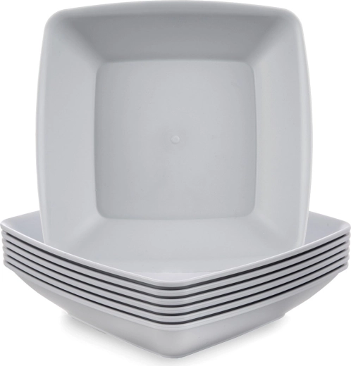 De praktische set van 6 diepe borden SANDY in vierkante uitvoering is een uitstekende keuze voor soepen, pasta, salades of eenpansgerechten. Dankzij het lichte maar stevige materiaal geschikt voor thuis en onderweg – voor een picknick, in de tuin, op de camping of in het vakantiehuis.