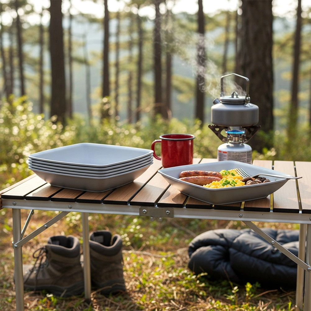 De borden hebben een inhoud van 500 ml en afmetingen van 17,5 × 17,5 × 4,7 cm. Ze zijn stapelbaar om ruimte te besparen, schok- en barstbestendig en eenvoudig te onderhouden – je kunt ze in de vaatwasser reinigen en opwarmen in de magnetron. Handig voor dagelijks gebruik én tijdens outdooractiviteiten.