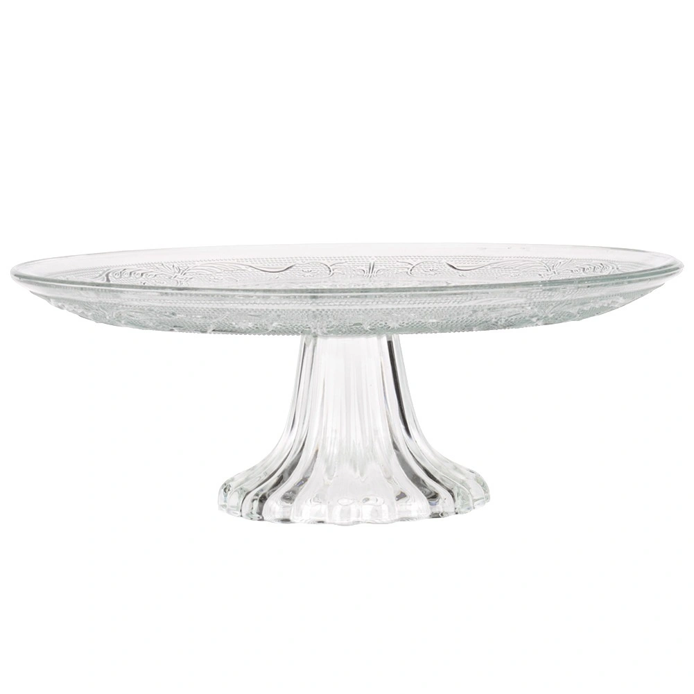 De glazen taartschaal op voet is ideaal voor het serveren en presenteren van taarten, cakes, gebak en hartige hapjes. De klassieke ronde vorm met decoratief reliëf past perfect bij elke tafelsetting en accentueert de uitstraling van de geserveerde lekkernijen.