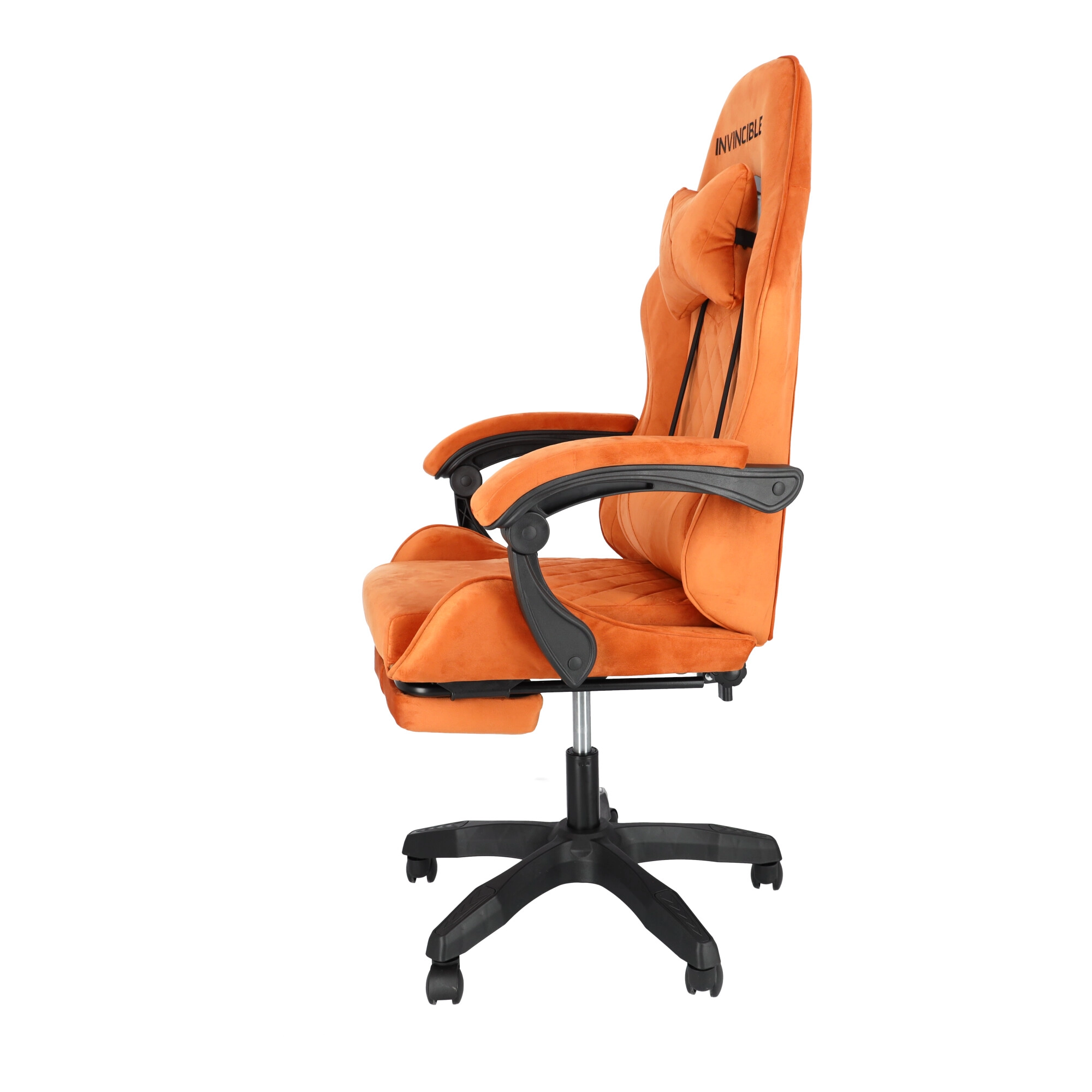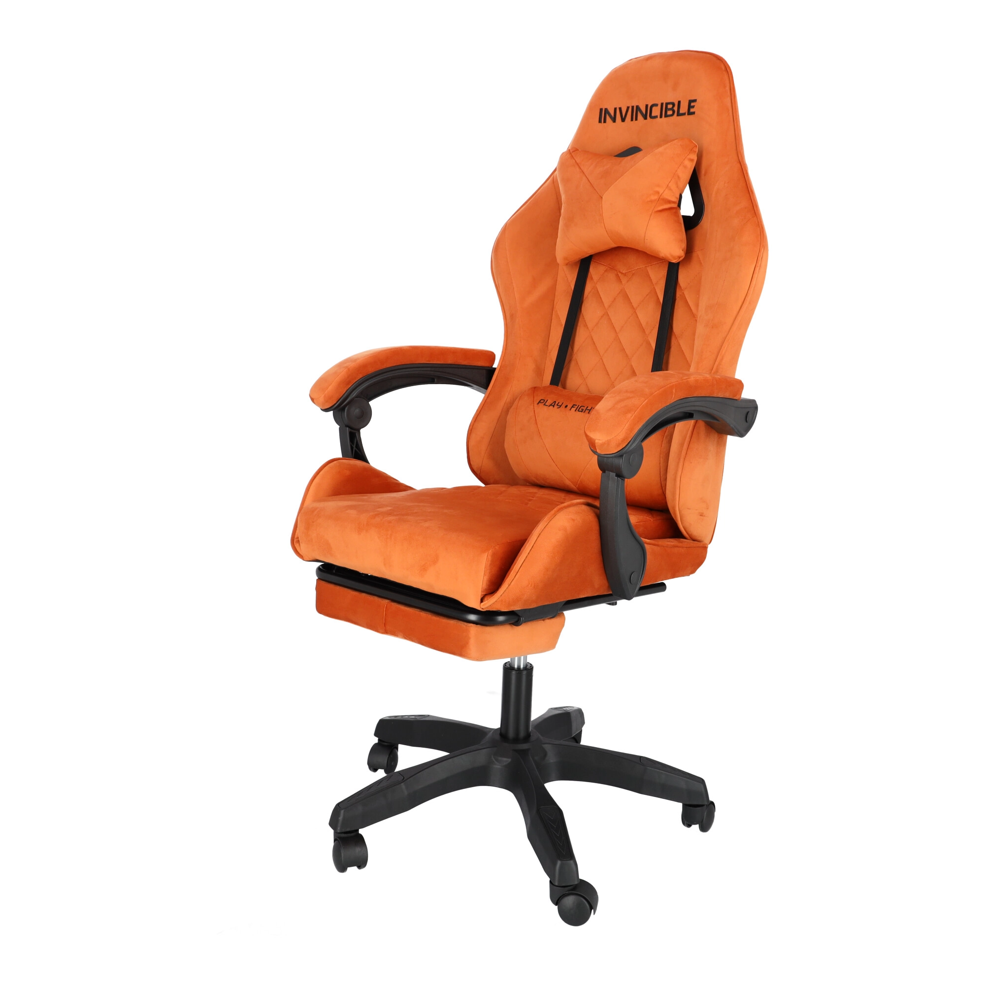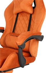 Geniet van het comfort en de ondersteuning die je nodig hebt voor lange gamemarathons en werkdagen. De stoel blinkt uit met zachte veloursbekleding in een warme bruine tint, een ergonomisch gevormde rug en een kuipprofiel voor betere stabilisatie van het lichaam. De geïntegreerde uitklapbare voetsteun en rugleuning kantelbaar tot 145° laten je in enkele seconden schakelen van prestatie naar ontspanning.