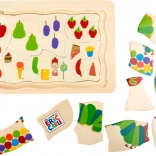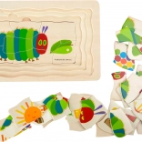 Deze houten laagjespuzzel, geïnspireerd op het verhaal van Rupsje Nooitgenoeg, begeleidt kinderen stap voor stap bij het leggen. Elke laag verhoogt de moeilijkheidsgraad en brengt nieuwe illustraties, waardoor kinderen geduld en logisch denken ontwikkelen.