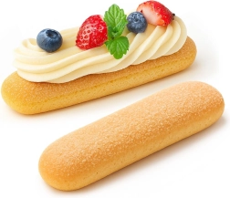 De gebakken lange vingers kun je eenvoudig afwerken met room en fruit voor een aantrekkelijke presentatie van huisgemaakte desserts.