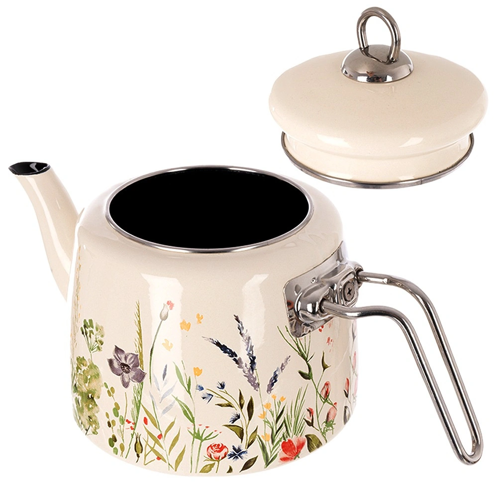 De stijlvolle crèmekleurige theeketel met bloemendecor is ideaal voor het dagelijks koken van water voor thee, koffie of kruiden, en ook geschikt om direct op tafel te serveren. Het duurzame geëmailleerd staal is veilig voor de gezondheid en geschikt voor mensen met allergieën, terwijl de roestvrijstalen details zorgen voor stevigheid en een lange levensduur.