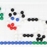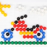 Zonder voorbeelden en met 120 kleurrijke onderdelen met een diameter van 10 mm creëren kinderen hun eigen afbeeldingen en trainen zij hun creativiteit.