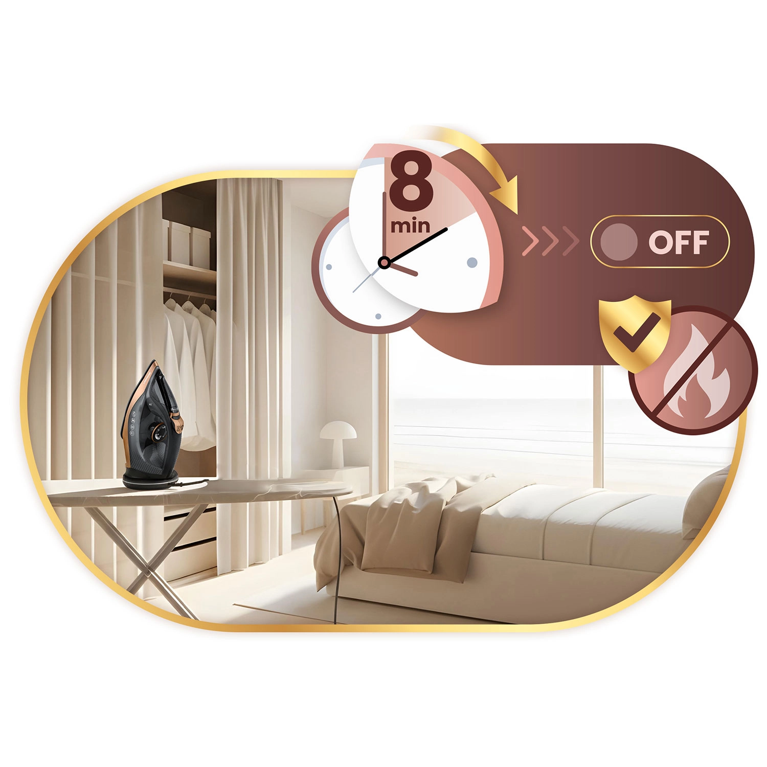De Auto-Off-functie (Smart&Safe) schakelt het strijkijzer na 8 minuten inactiviteit uit. Self Clean maakt reinigen eenvoudig en verlengt de levensduur.