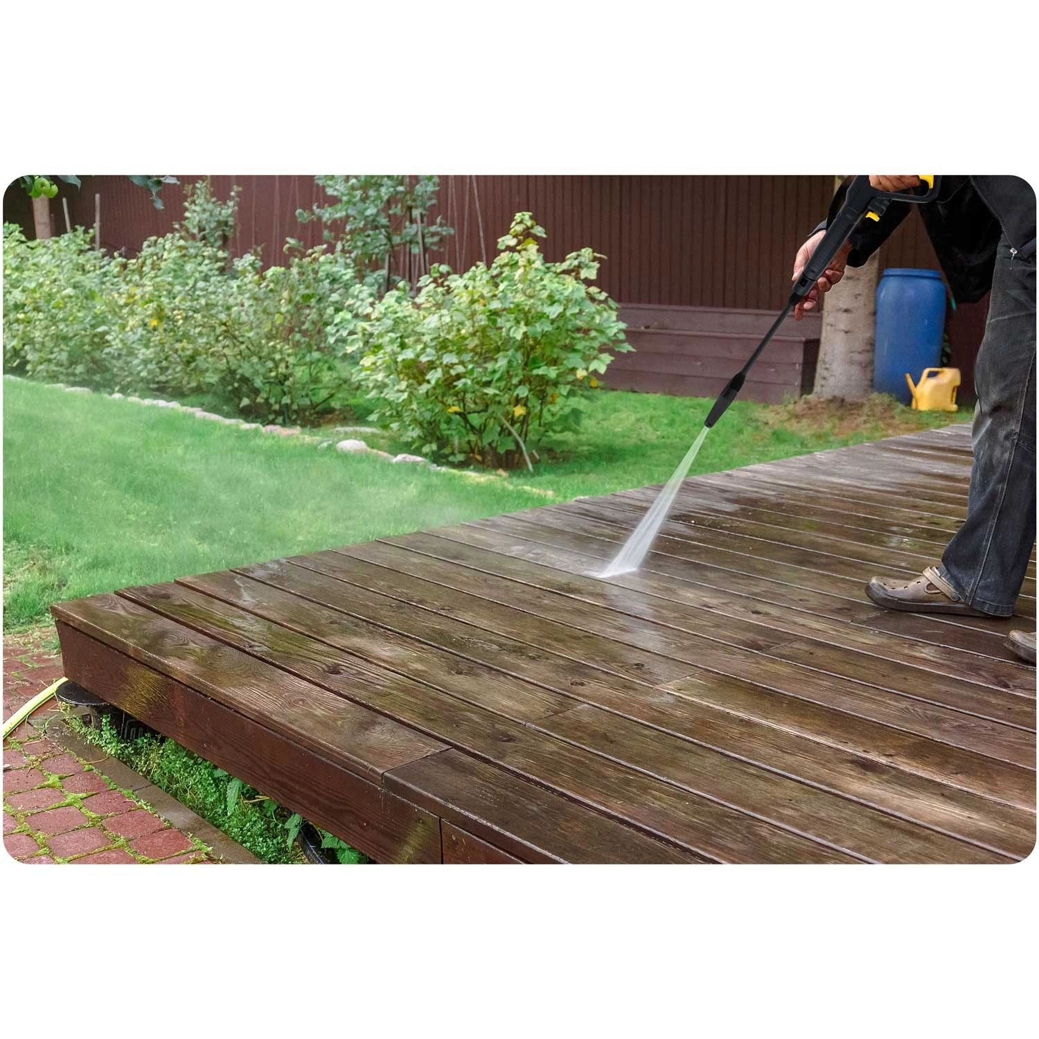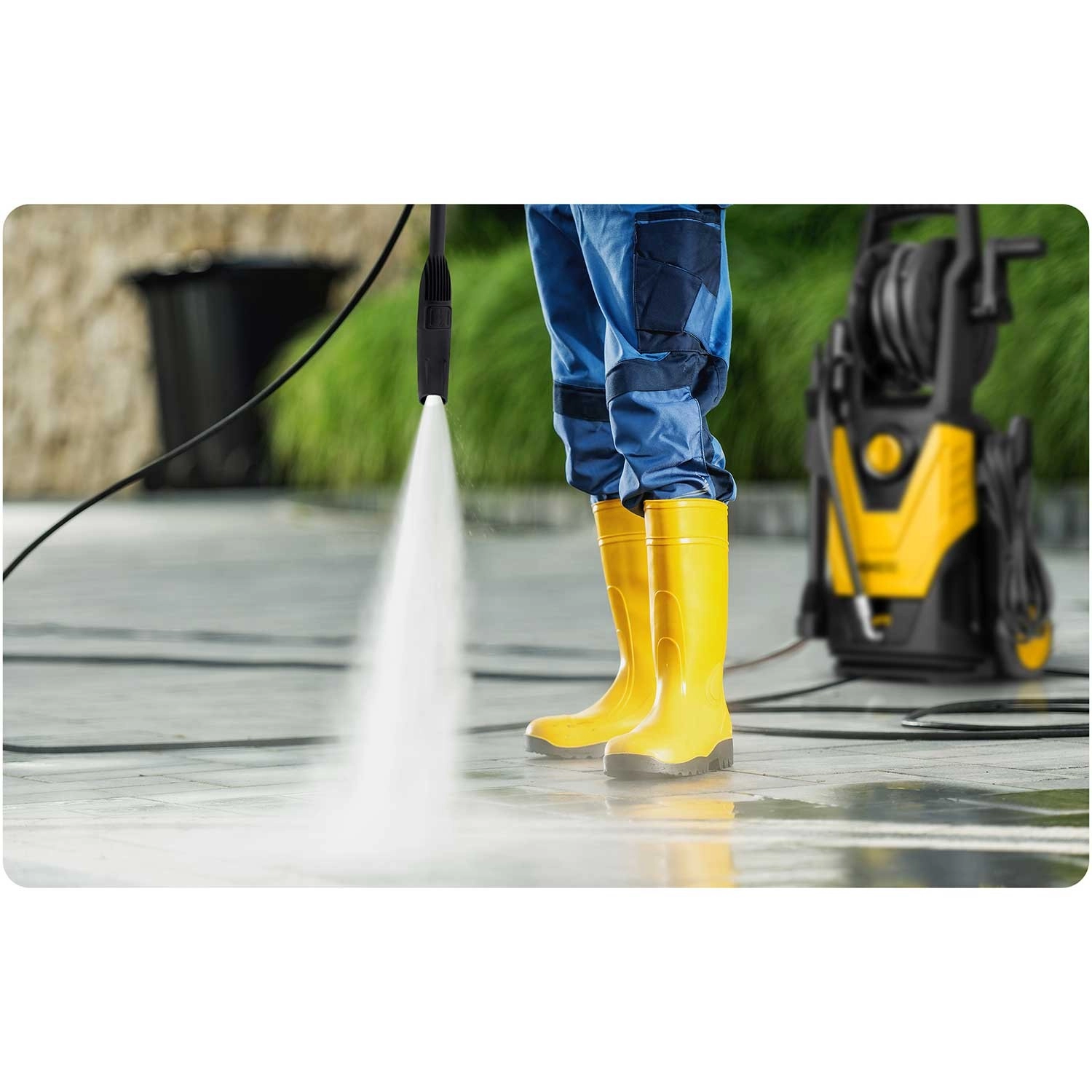De geconcentreerde hogedrukstraal verwijdert snel vet, modder en mos op bestrating. Ideaal voor veeleisende reiniging van terrassen, trottoirs en voertuigonderstellen.