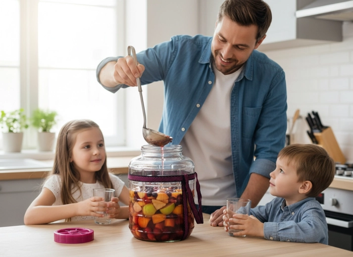 Bereid in één keer grotere batches van huisgemaakte wijn, limonades, sappen of ingelegde groenten. Het heldere glas maakt controle van de inhoud en het proces eenvoudig.