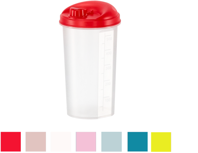 Praktische olie- en azijnfles met een inhoud van 500 ml en een geïntegreerde maatbeker voor nauwkeurige dosering. Gemaakt van veilig BPA-vrij plastic, vaatwasmachinebestendig en dankzij het ergonomische ontwerp comfortabel in gebruik en eenvoudig op te bergen. Verkrijgbaar in verschillende kleuren (willekeurig verzonden), zodat het ook een stijlvol element aan je keuken toevoegt.