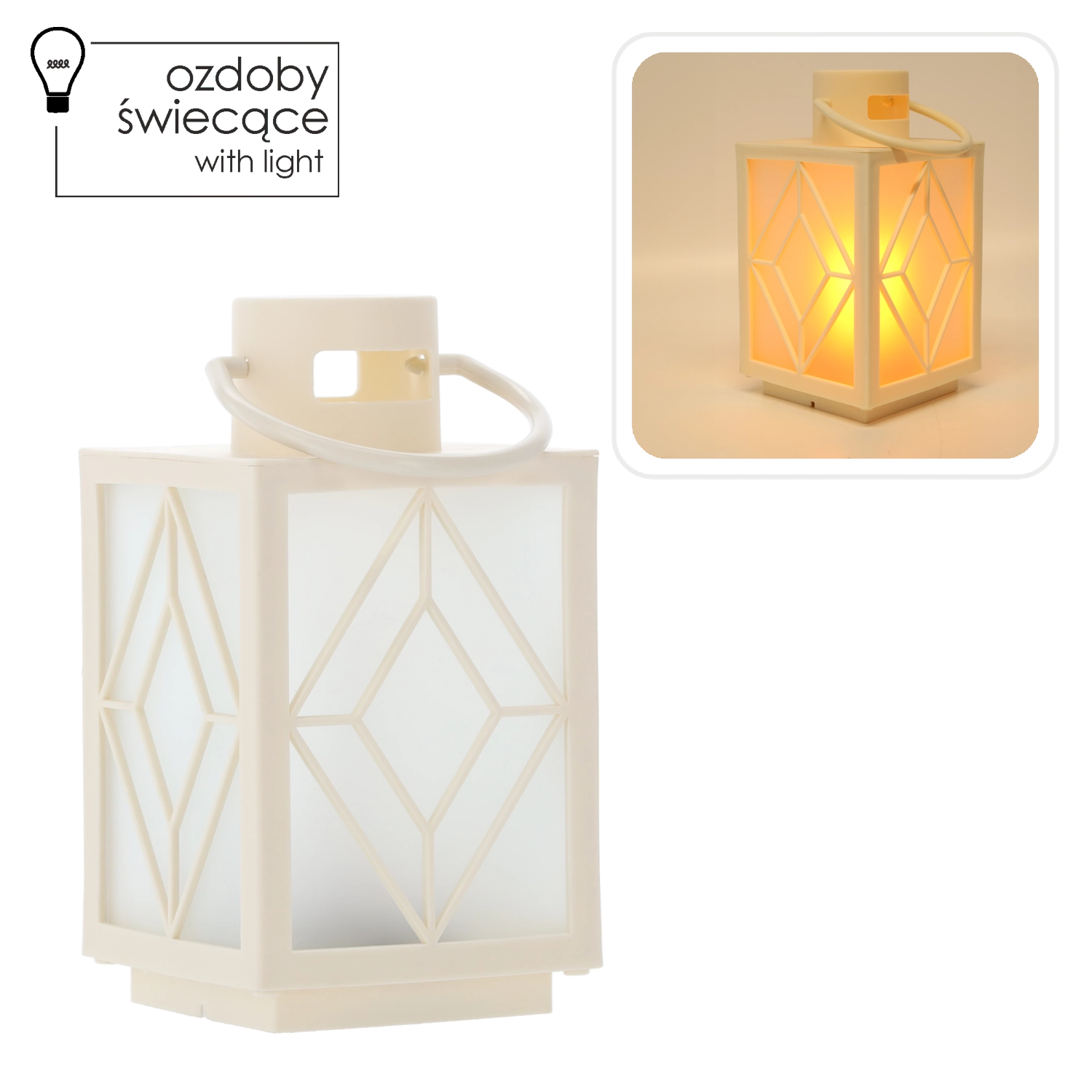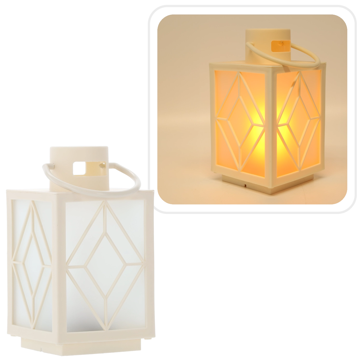 Versier je huis met een zachte, warme gloed. De witte decoratieve lantaarn met matte inzetpanelen en geometrisch motief zorgt voor prettig diffuus licht dat aan een kaars doet denken, maar zonder rook en was. Ideaal voor adventsdecoratie, avondlijke ontspanning of een feestelijk gedekte tafel.