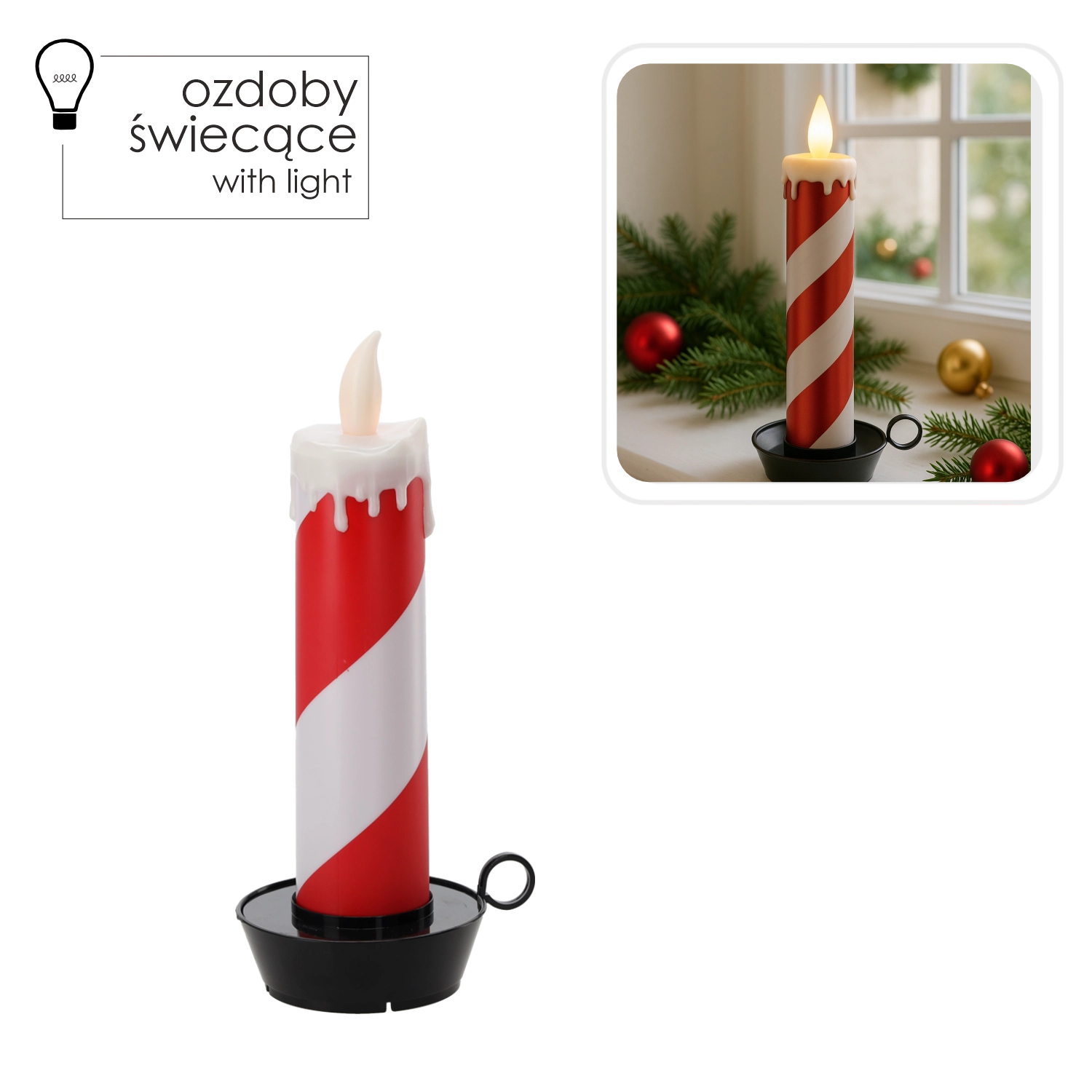 Deze stijlvolle LED-kaars met wit-rode strepen in zuurstokdesign verlicht elk interieur. Het warme, flikkerende licht creëert een knusse sfeer zonder risico van open vuur en zonder rommel van druipende was.