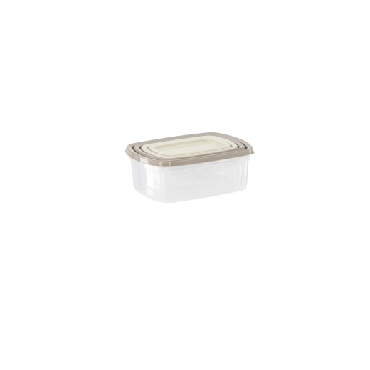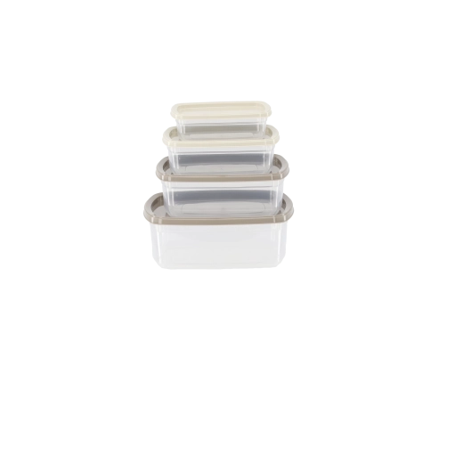 Praktische set van vier rechthoekige voedselcontainers met inhoud van 0,25 l, 0,5 l, 0,75 l en 1,2 l voor slim opbergen in de keuken. Dankzij het transparante design zie je de inhoud in één oogopslag, luchtdichte deksels helpen voedsel langer vers te houden en de stapelbare vorm bespaart ruimte in koelkast en voorraadkast.