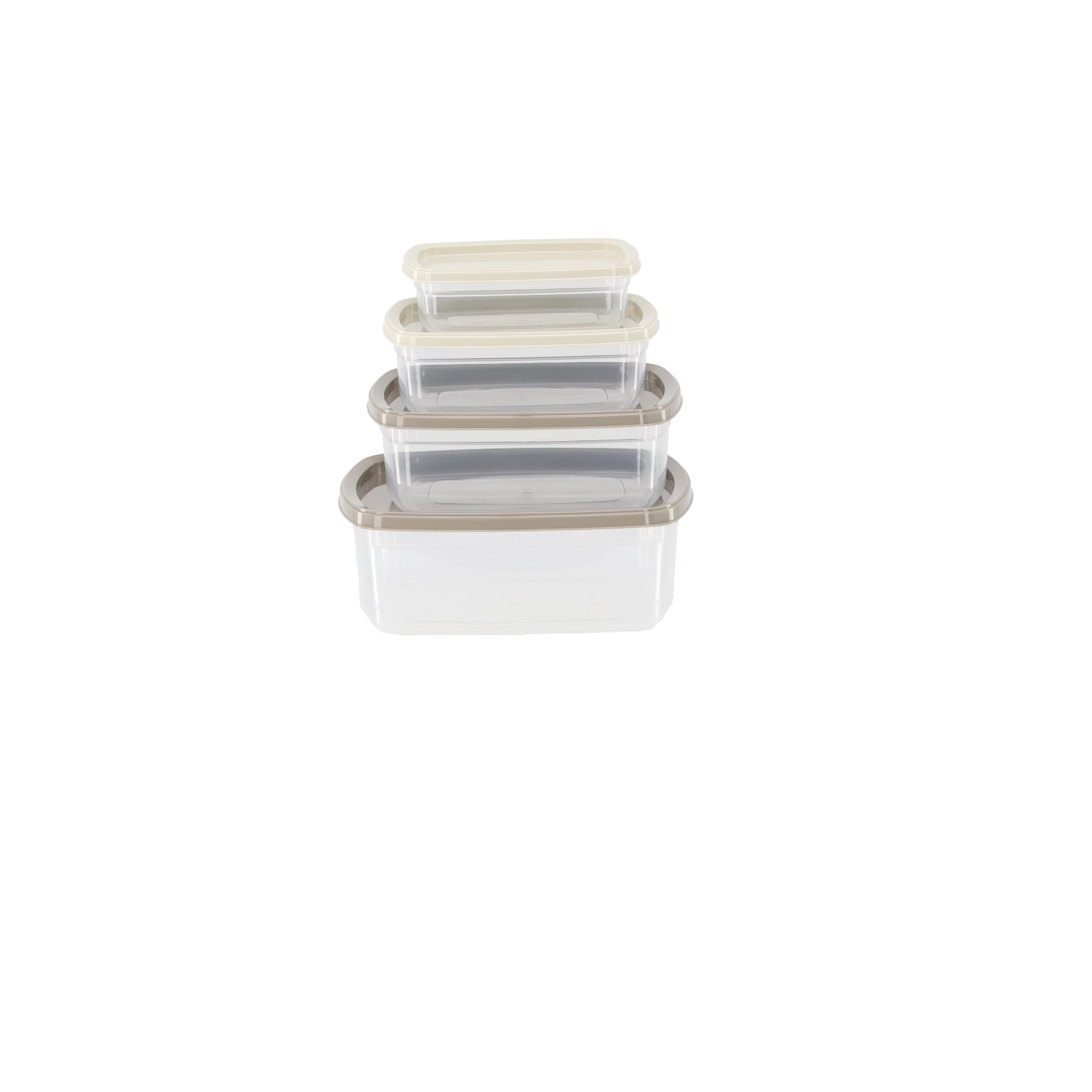 - Transparante body, lichtbeige deksels